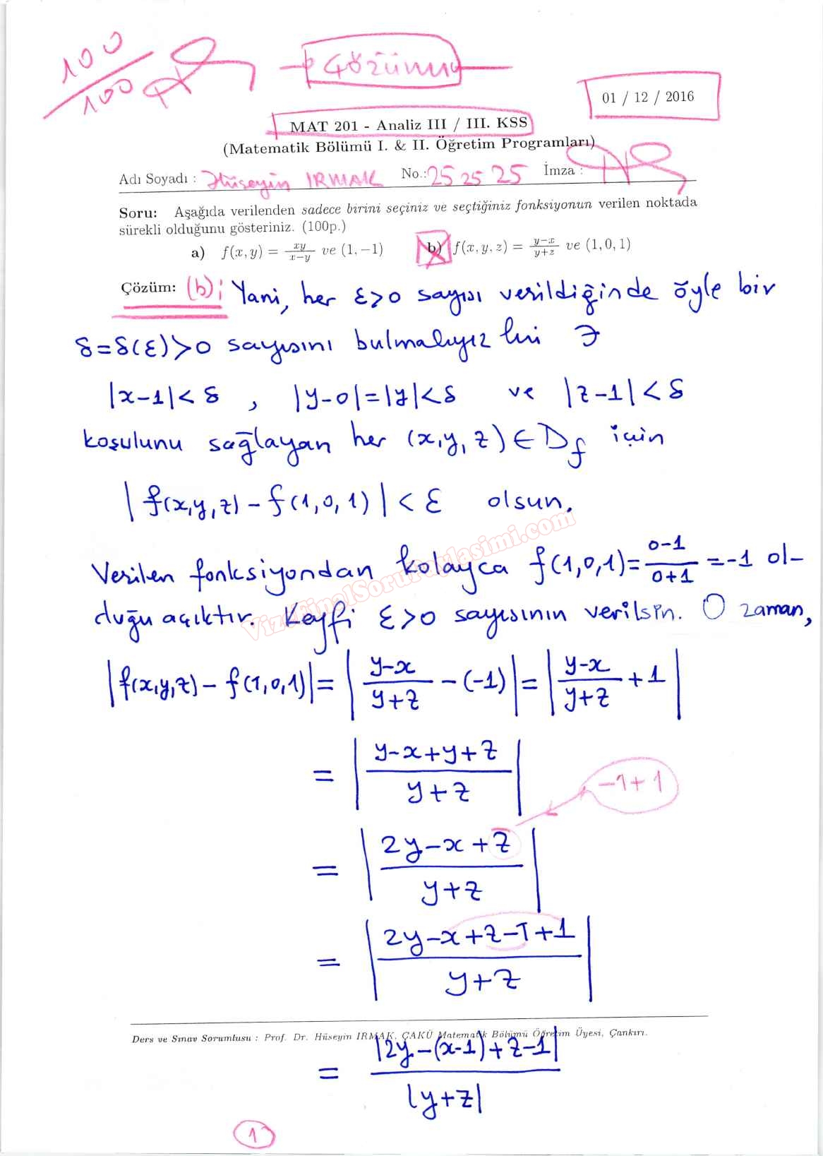 Analiz -3 1.Kısa Sınav Soruları ve Cevapları 10-12-2016, 01:13