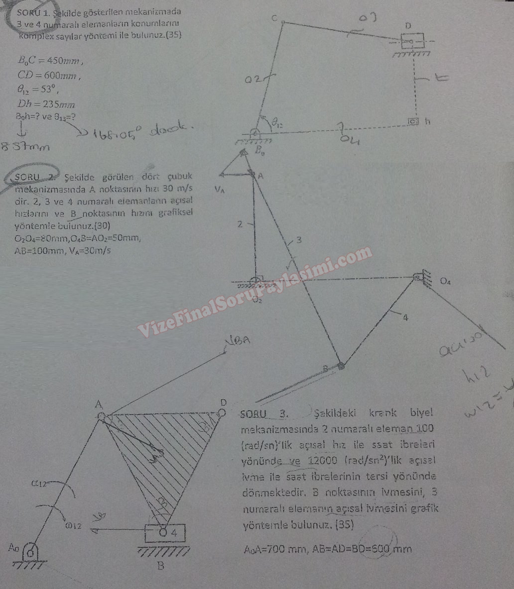Vize ve Final Soruları / Fırat Üniversitesi / Mekanizma Tekniği Dersi