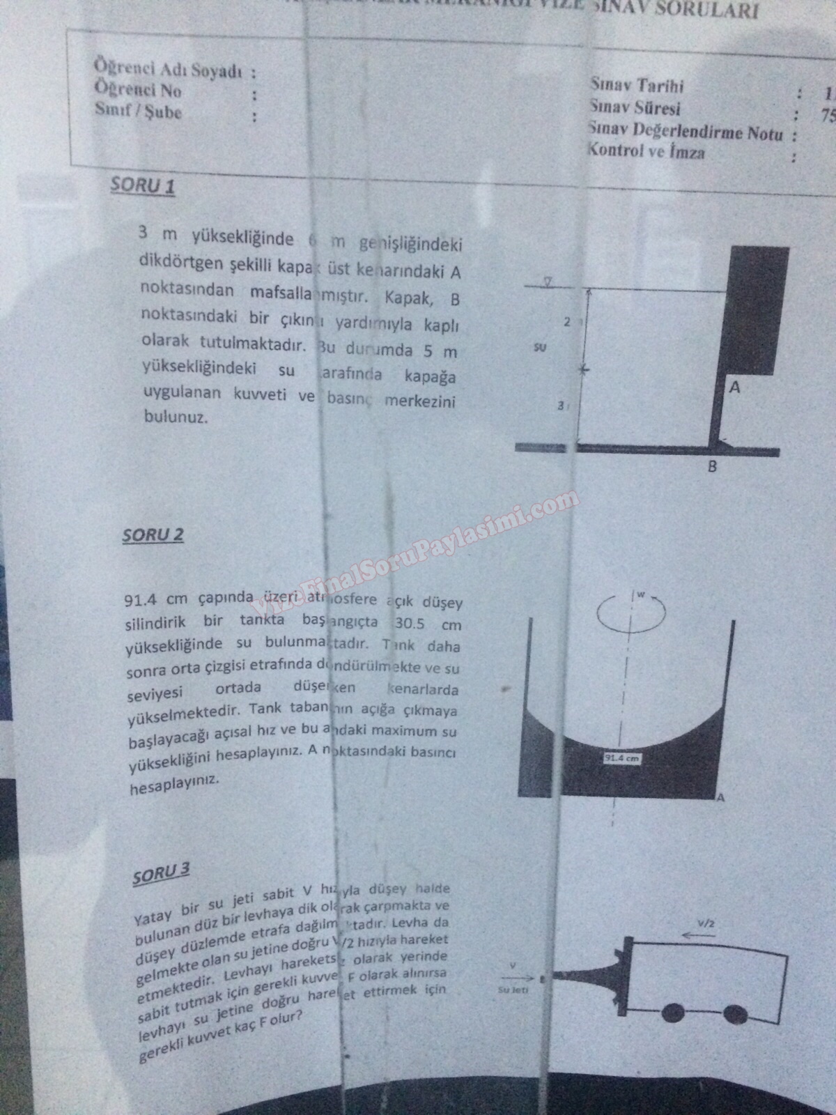Vize ve Final Soruları / Marmara Üniversitesi / Akışkanlar Mekaniği Dersi