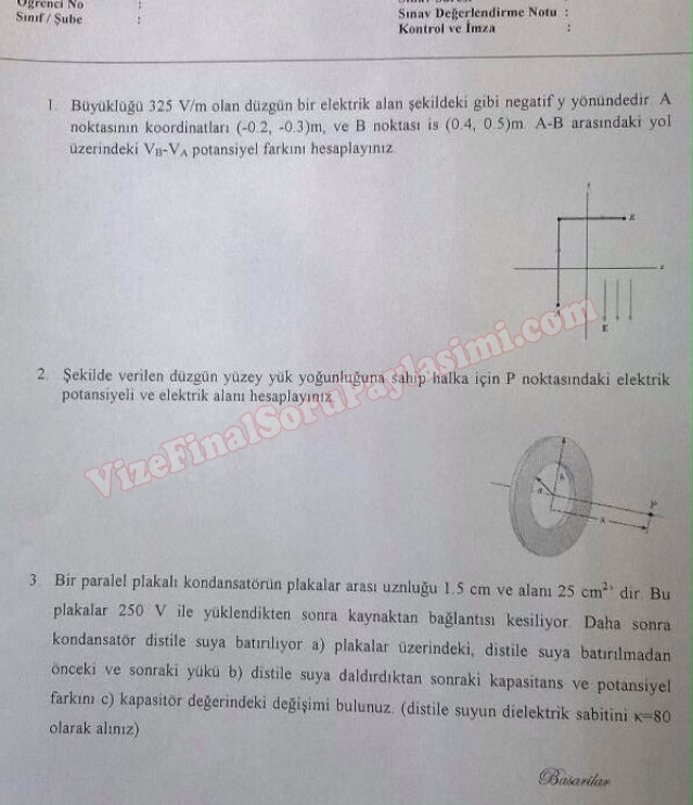 Fırat Üniversitesi Fizik Dersi Vize ve Final Soruları 4-06-2014, 03:01