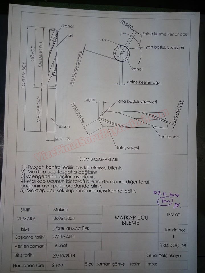 Talaşlı İmalat ve Takım Tezgahları Vize Soruları ve Cevapları 29-11-2016, 02:25