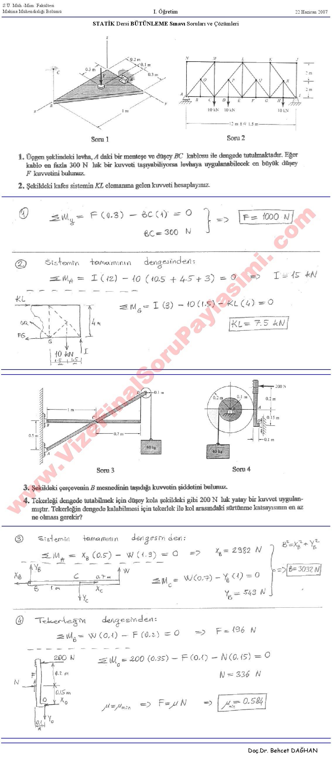 Statik Dersi Bütünleme Soruları Ve Çözümleri 26-10-2014, 23:31