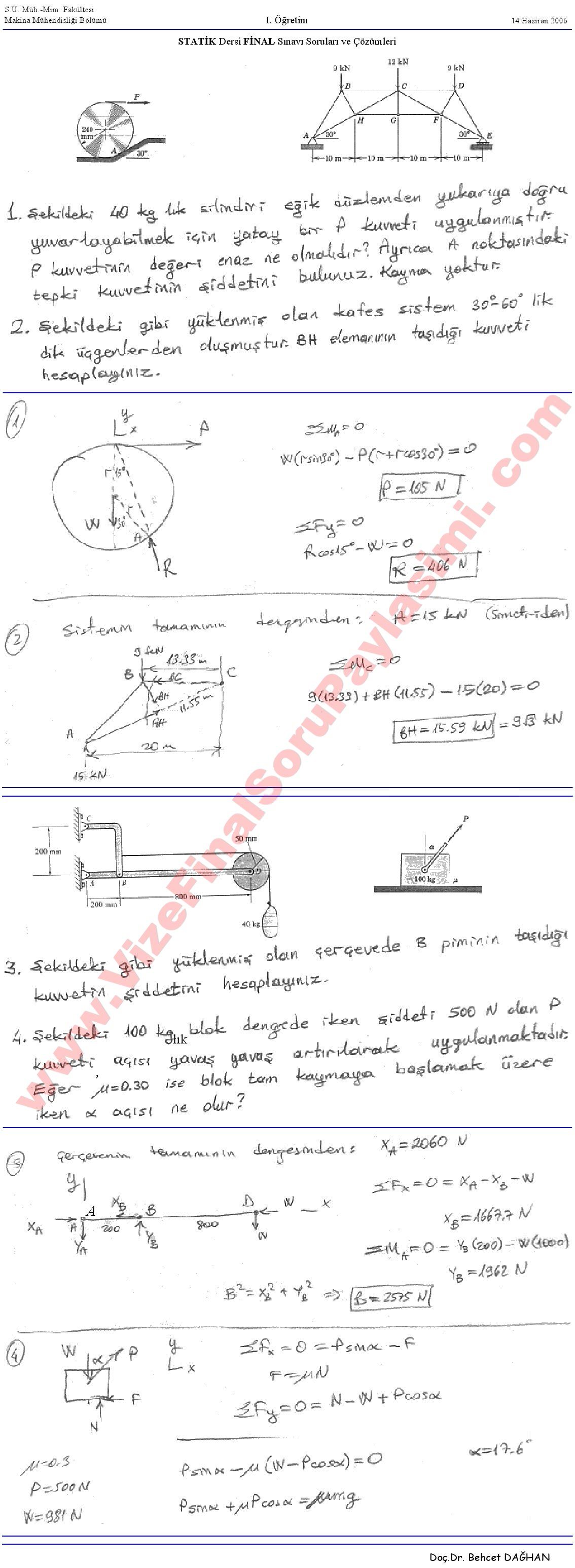 Statik Dersi Final Soruları ve Çözümleri 25-10-2014, 23:48