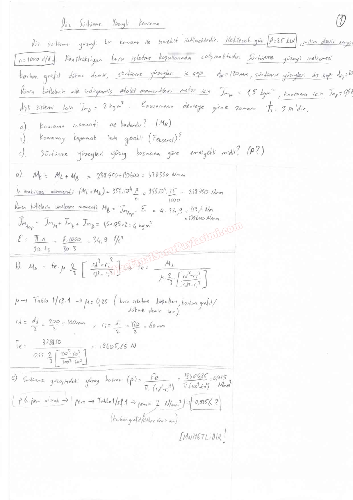 Çalışma Soruları Çözümleri Düz Sürtünme Yüzeyli Kavramalar Makine Elemaları -2 GERİ DÖN-