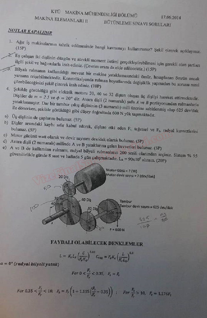 Vize ve Final Soruları / Karadeniz Teknik Üniversitesi / Makine Elemanları -2 Dersi
