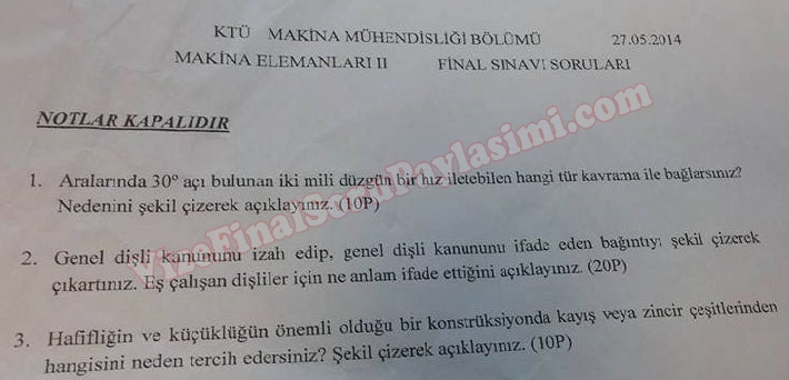 Vize ve Final Soruları / Karadeniz Teknik Üniversitesi / Makine Elemanları -2 Dersi