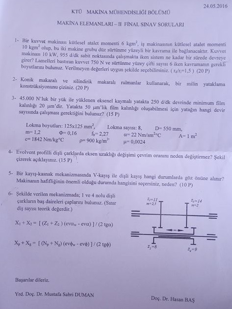 makine elemanlari elemanlari-2 dersi sorular katu karadeniz teknik uni universitesi Final
