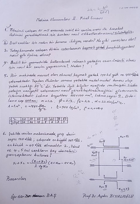 makine elemanlari elemanlari-2 dersi sorular katu karadeniz teknik uni universitesi Final