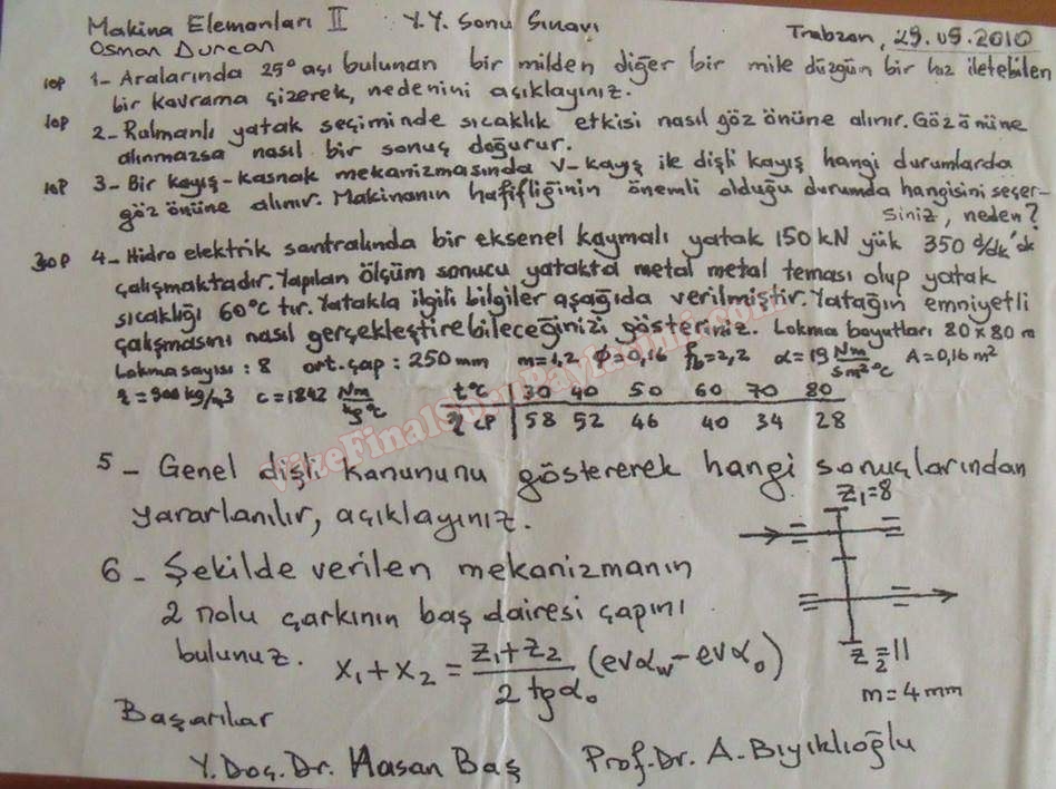 Vize ve Final Soruları / Karadeniz Teknik Üniversitesi / Makine Elemanları -2 Dersi