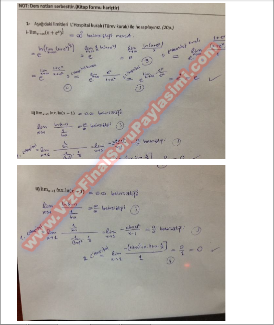 Matematik-1 Final Soruları Ve Cevapları - 2012