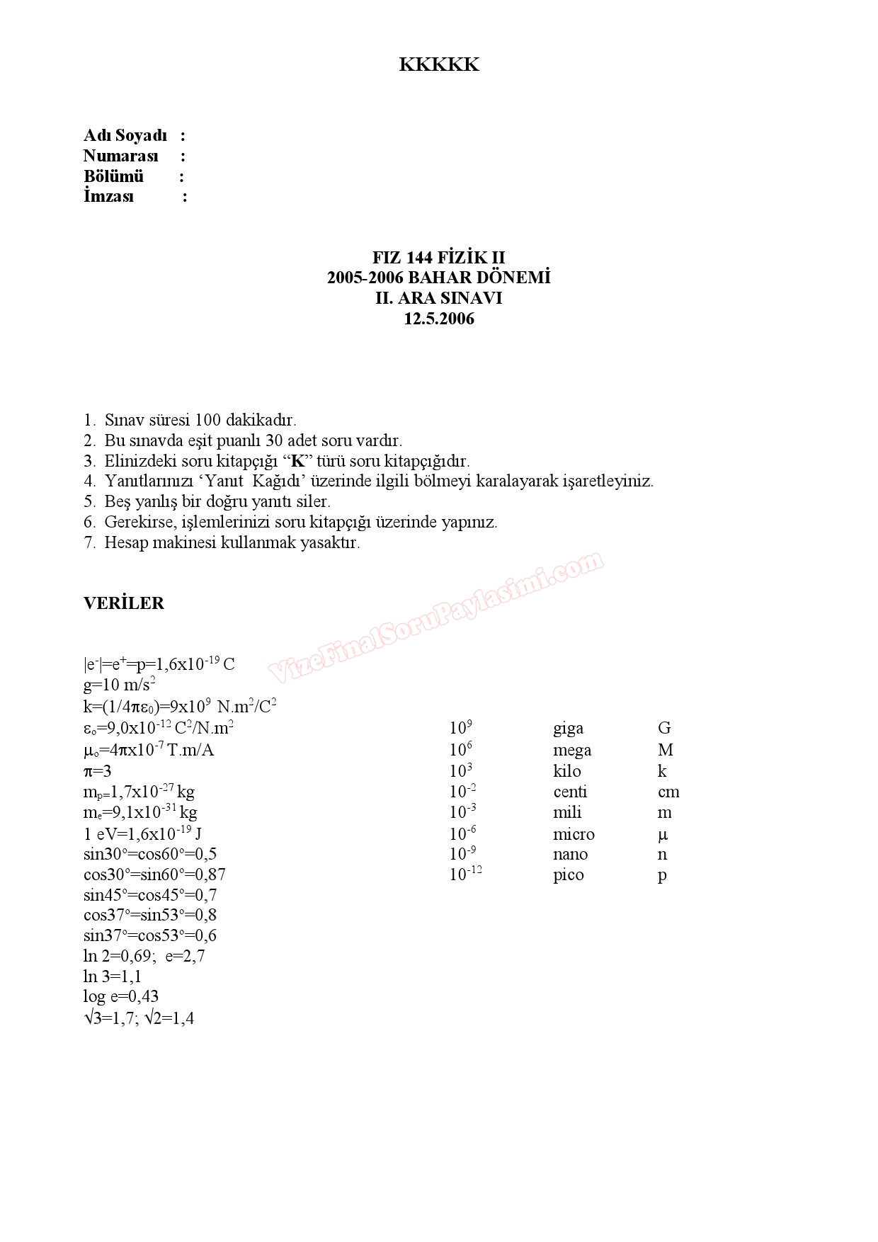 Fizik - 2 Arasınav Soruları 11-04-2017, 18:46