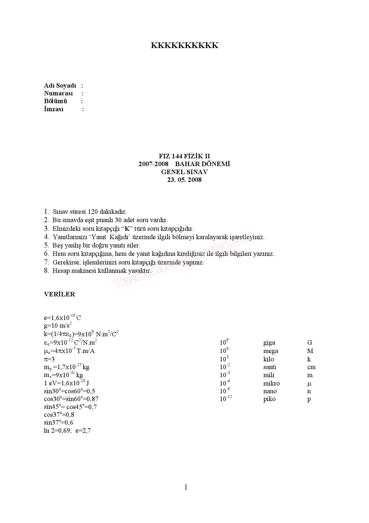 Fizik -2 Genel Sınav Soruları 10-06-2017, 15:18