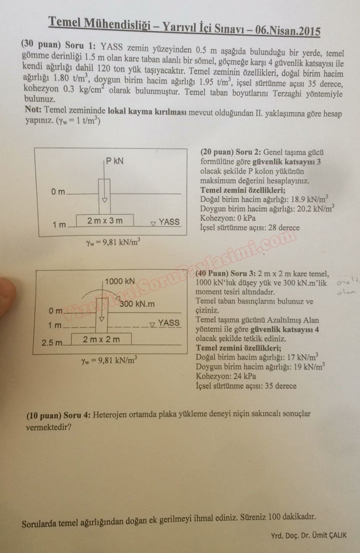 Vize ve Final Soruları / Karadeniz Teknik Üniversitesi / Temel Mühendisliği Dersi