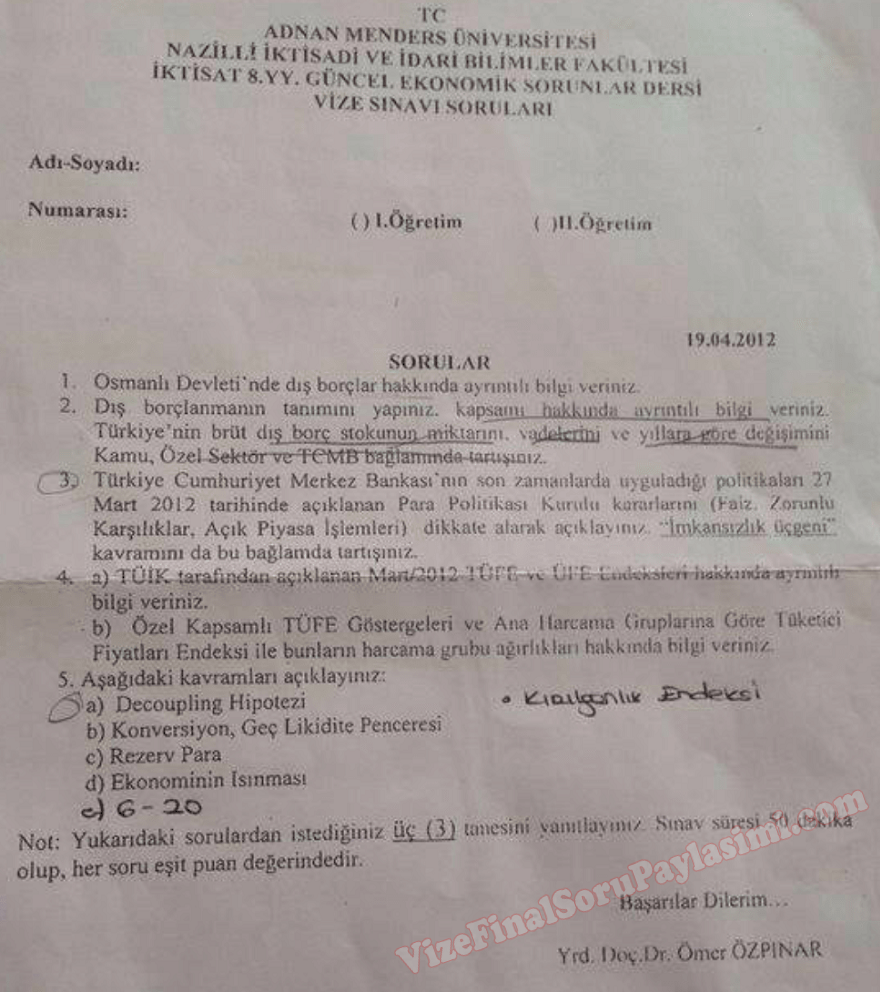 Vize ve Final Soruları / Adnan Menderes Üniversitesi / Güncel Ekonomik Sorunlar Dersi