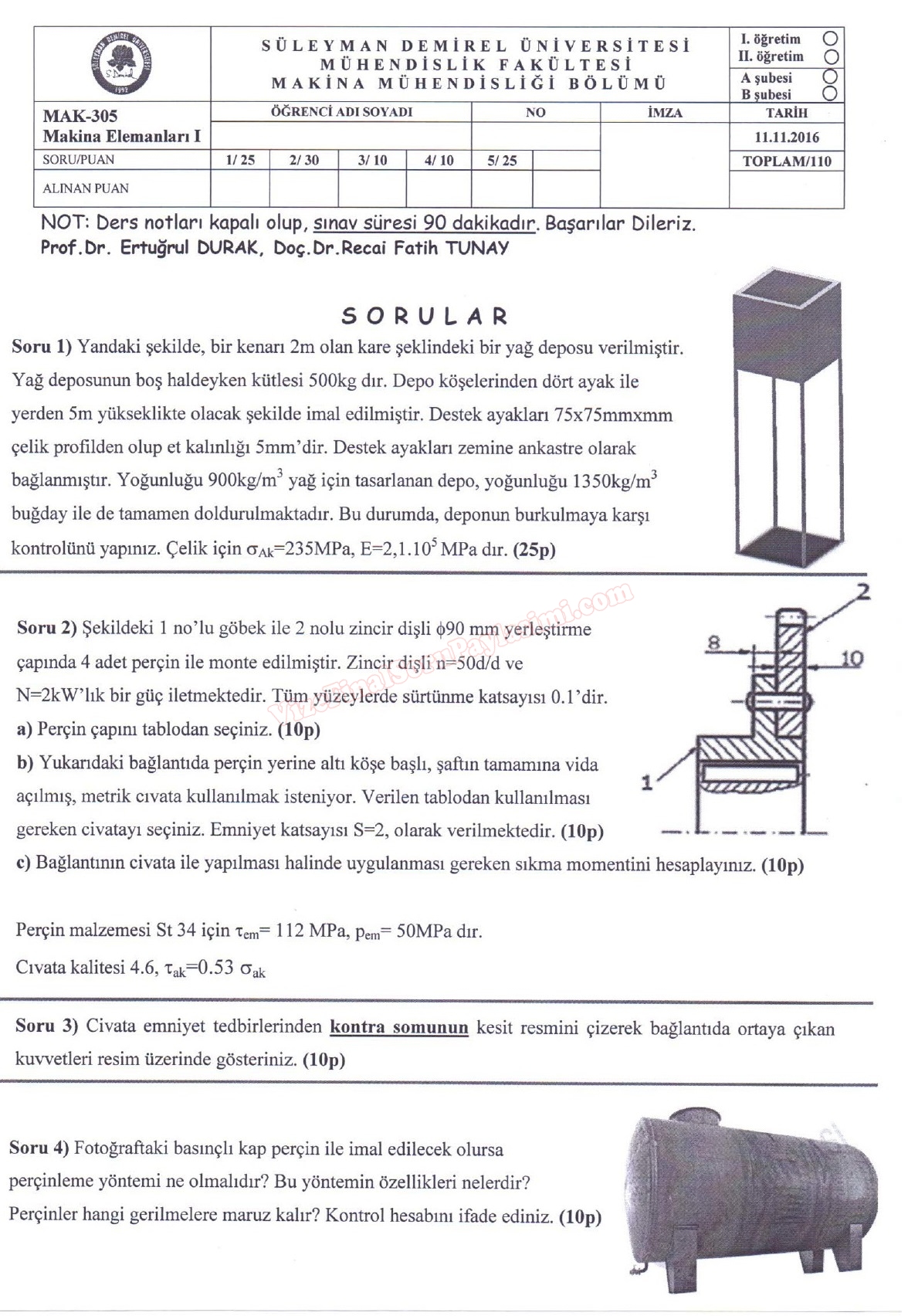 Makine Elemanları -1 Vize Soruları ve Cevapları Süleyman Demirel Üniversitesi SDÜ 2016 GERİ DÖN-