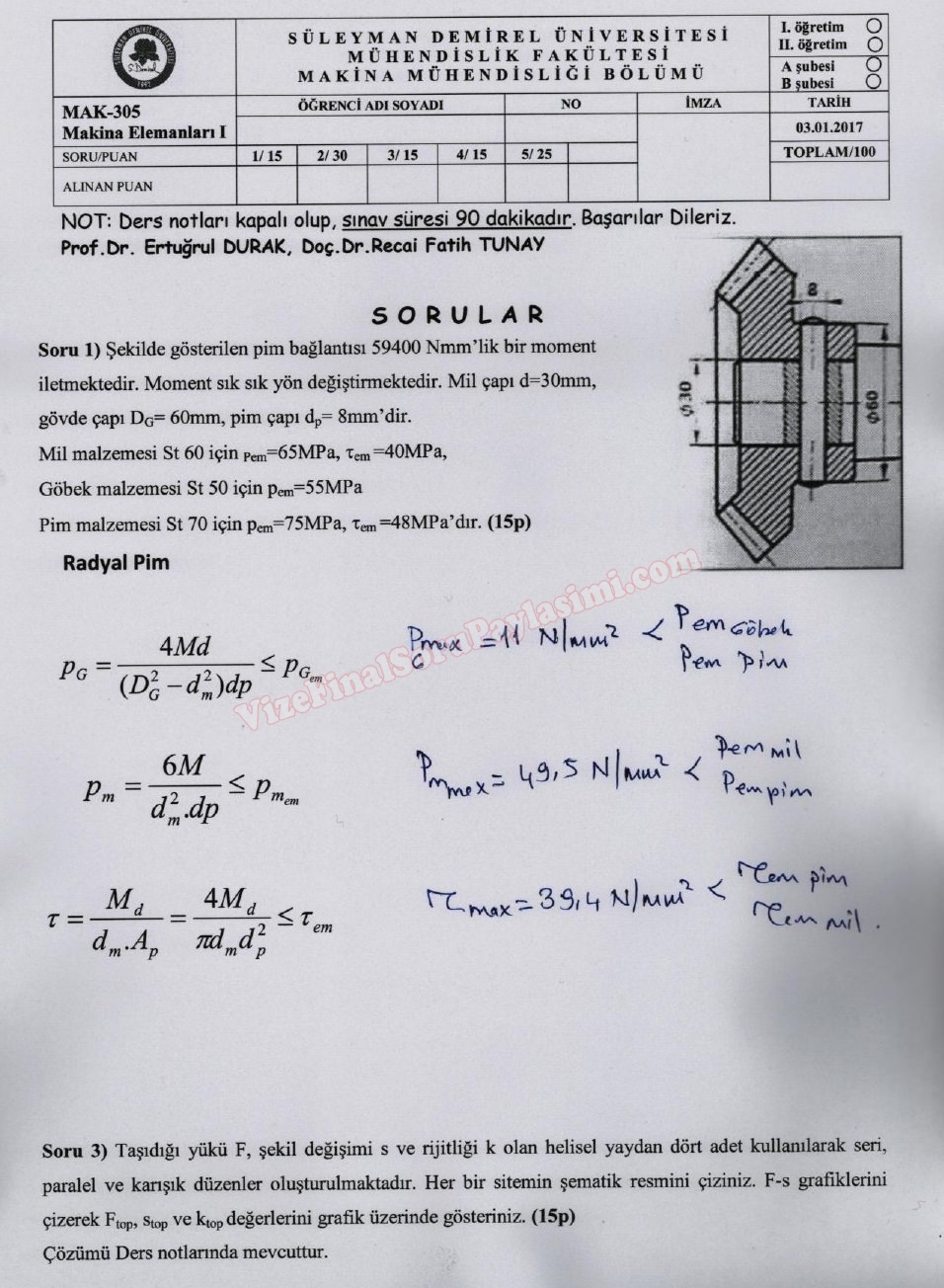 final soruları Final Soruları ve Cevapları Süleyman Demirel Üniversitesi SDÜ 2017 Makine Elemanları -1 GERİ DÖN-