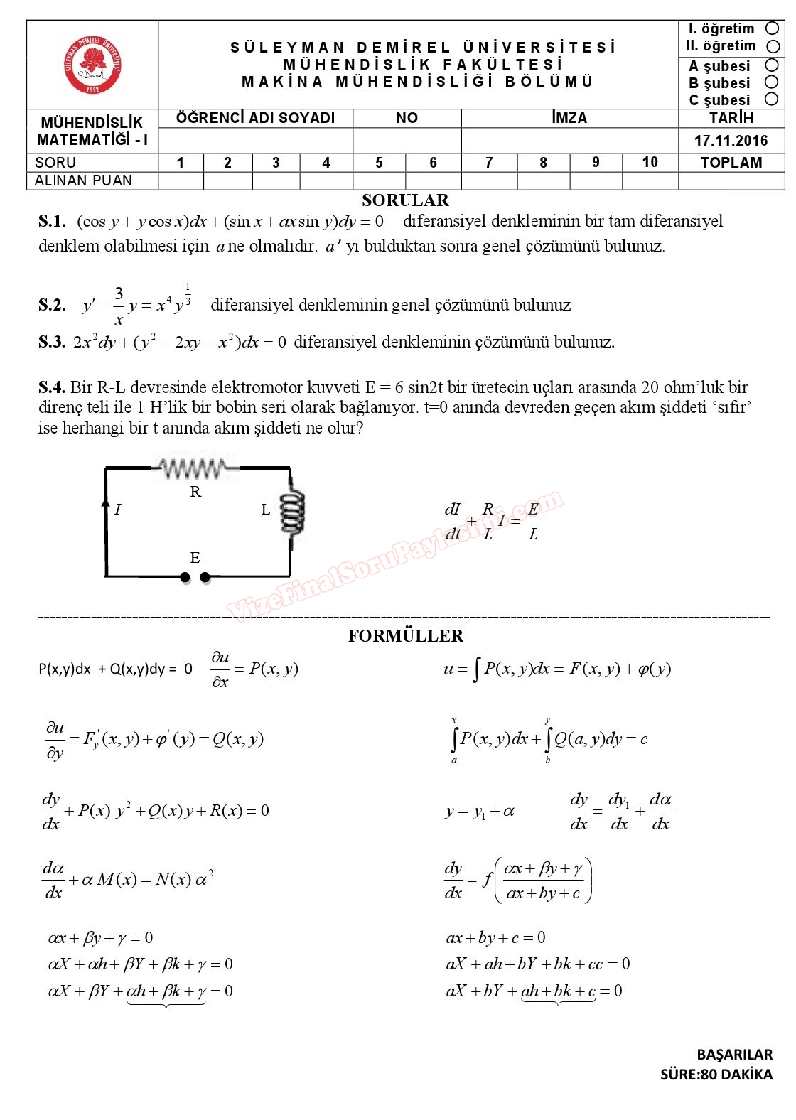 Mühendislik Matematiği Vize Soruları 17-03-2016, 14:01