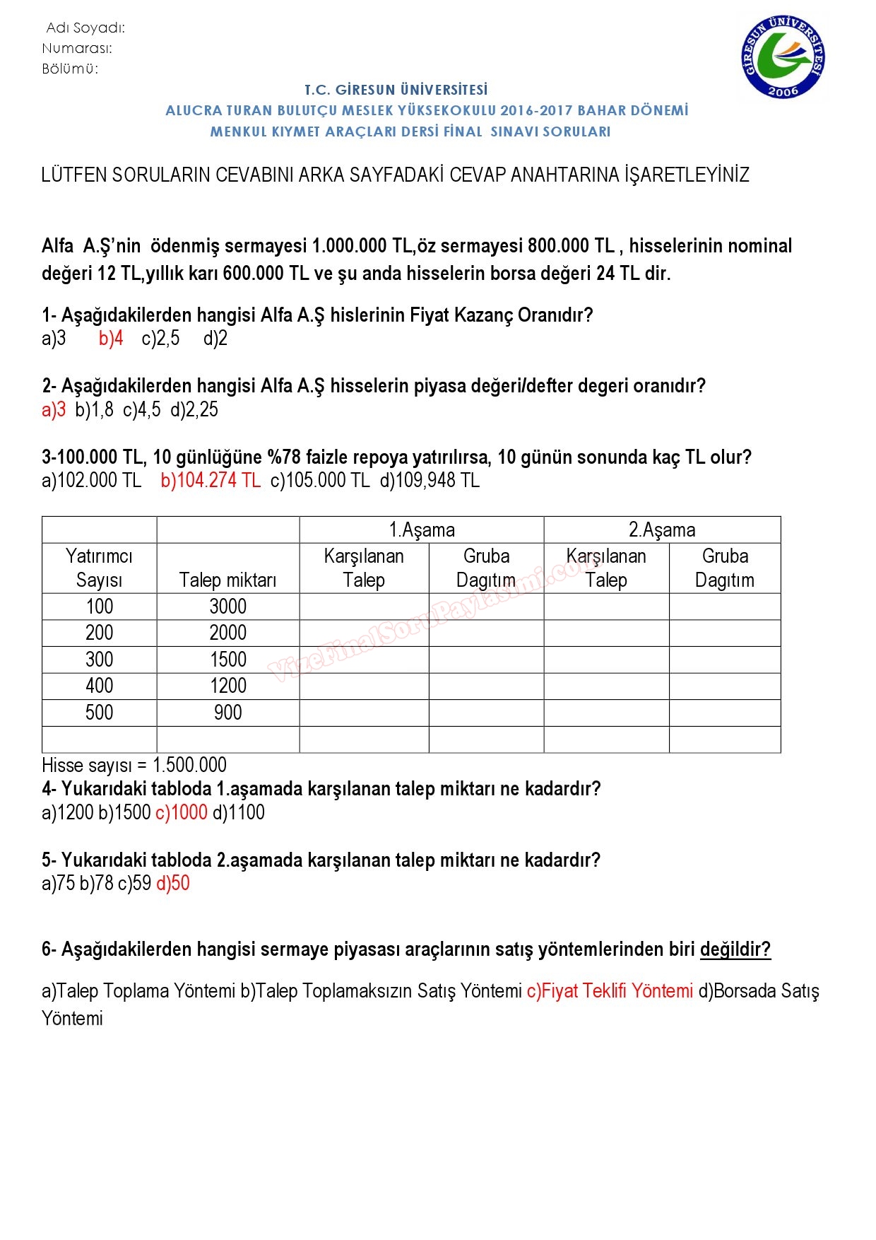 Menkul Kıymet Araçları final soruları Final Soruları ve Cevapları Giresun Üniversitesi 2017 GERİ DÖN-