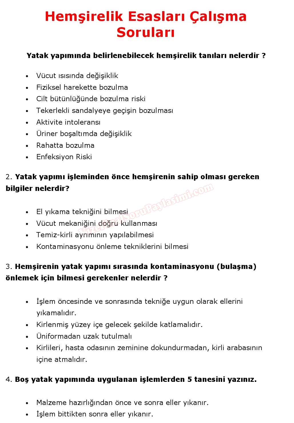 Hemşirelik Esasları Çalışma Soruları