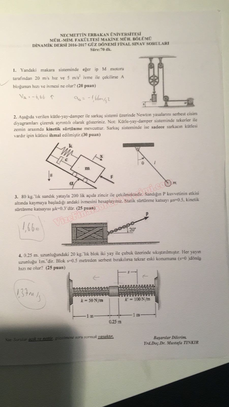 Vize ve Final Soruları / Necmettin Erbakan Üniversitesi / Dinamik Dersi