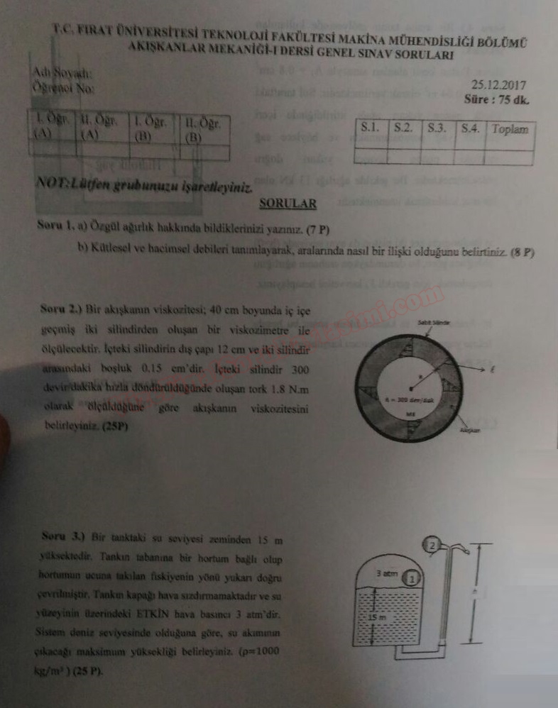 Fırat Üniversitesi final soruları cevapları Akışkanlar Mekaniği -1 2017 çözümleri GERİ DÖN-