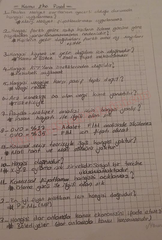 Kamu Maliyesi Dersi Final Soruları ve Cevapları 28-05-2017, 23:45