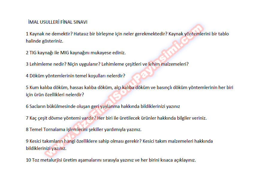 İmal Usulleri Final Soruları Ve Cevapları - 20.05.2011