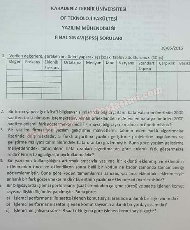ktu Karadeniz Teknik Üniversitesi mühendislikte ististiksel yöntemler dersi final soruları final soruları üniversite final
