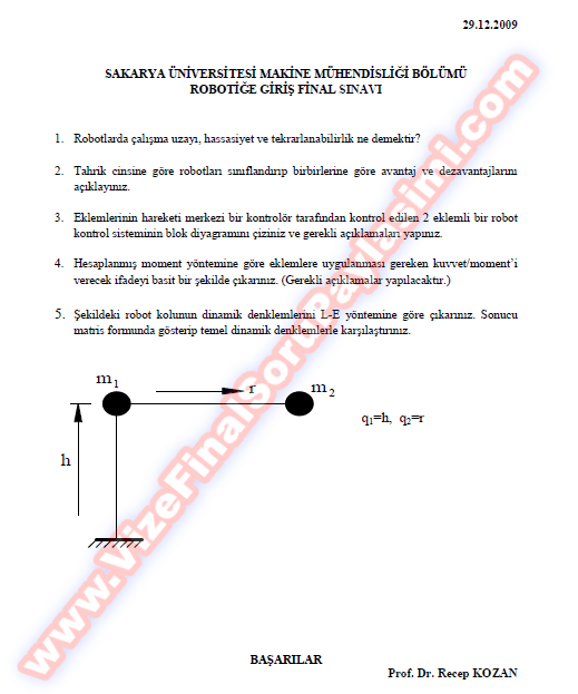 Robotiğe Giriş Final Soruları - 29.12.2009