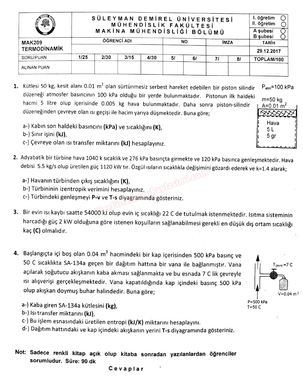 sdu Süleyman Demirel Üniversitesi termodinamik Termodinamik Dersi final soruları cevapları 2017 GERİ DÖN-