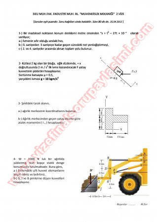 Mühendislik Mekaniği Vize Soruları Ve Cevapları-2012 18-02-2015, 22:11