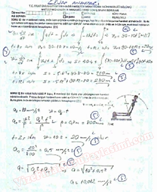 Fırat Üniversitesi vize final soruları 2017 mühendislik mekaniği çözümleri cevapları GERİ DÖN