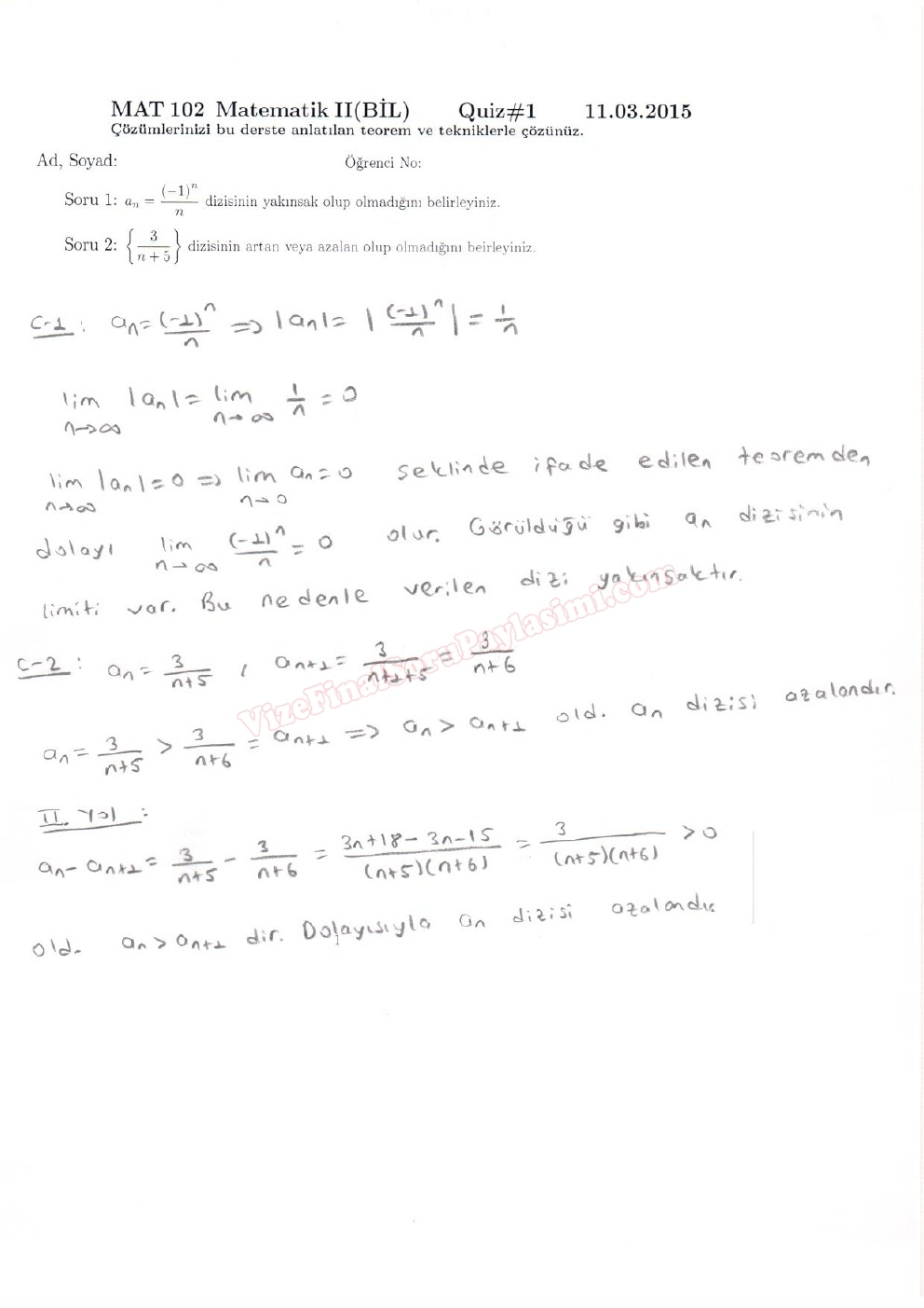 Vize ve Final Soruları / Boğaziçi Üniversitesi / Matematik -2
