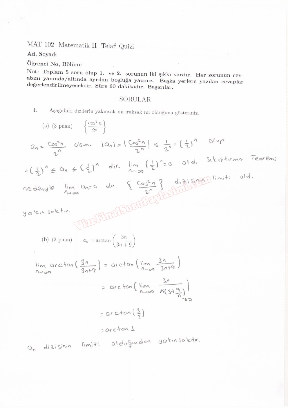 Boğaziçi Üniversitesi matematik-2 sınav soruları cevaplari GERİ DÖN-