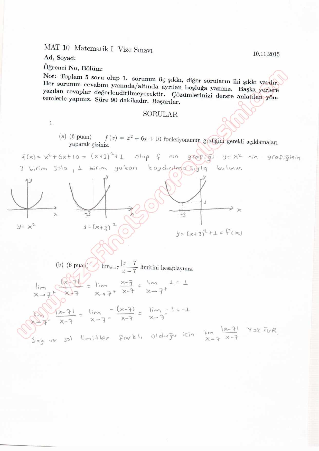 Matematik -1 Dersi Vize Soruları ve Cevapları