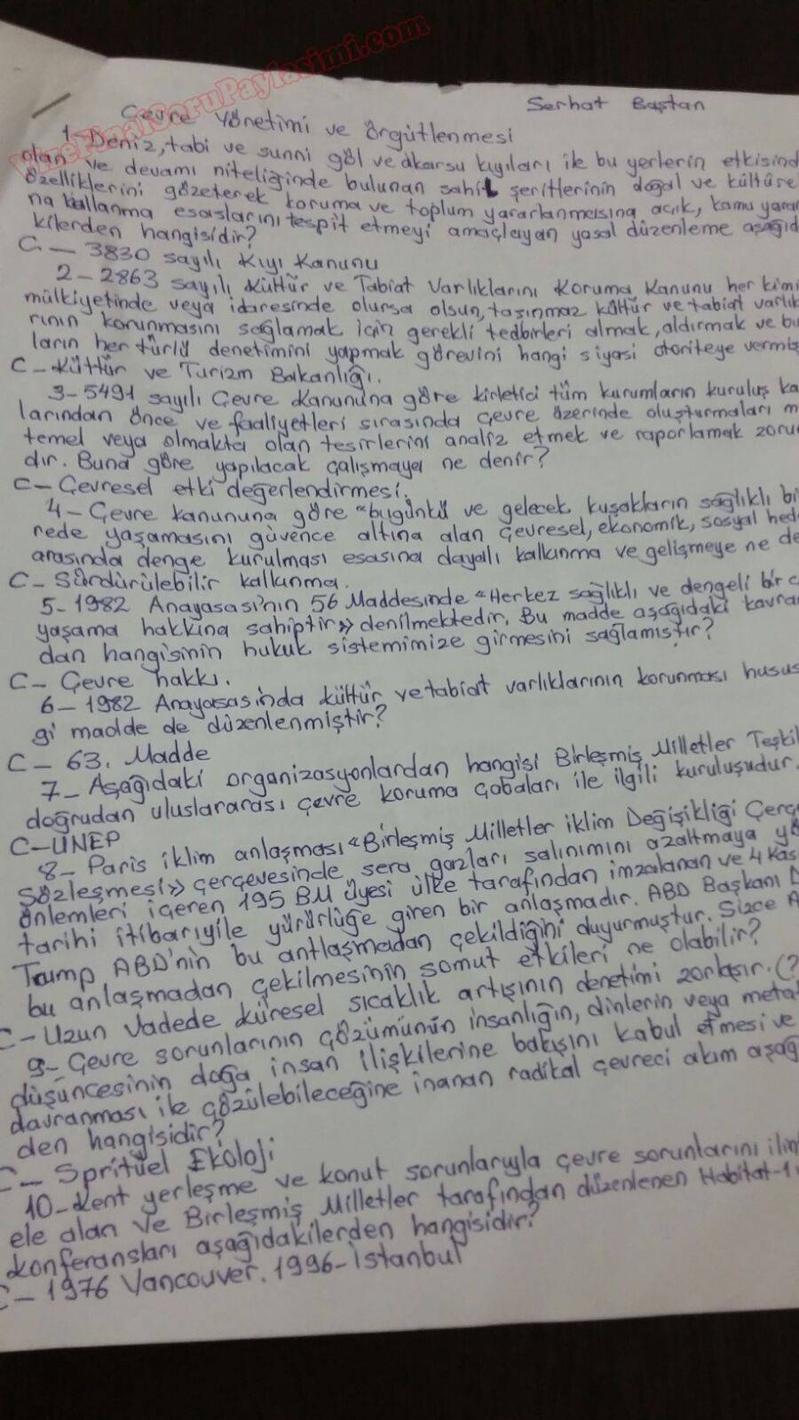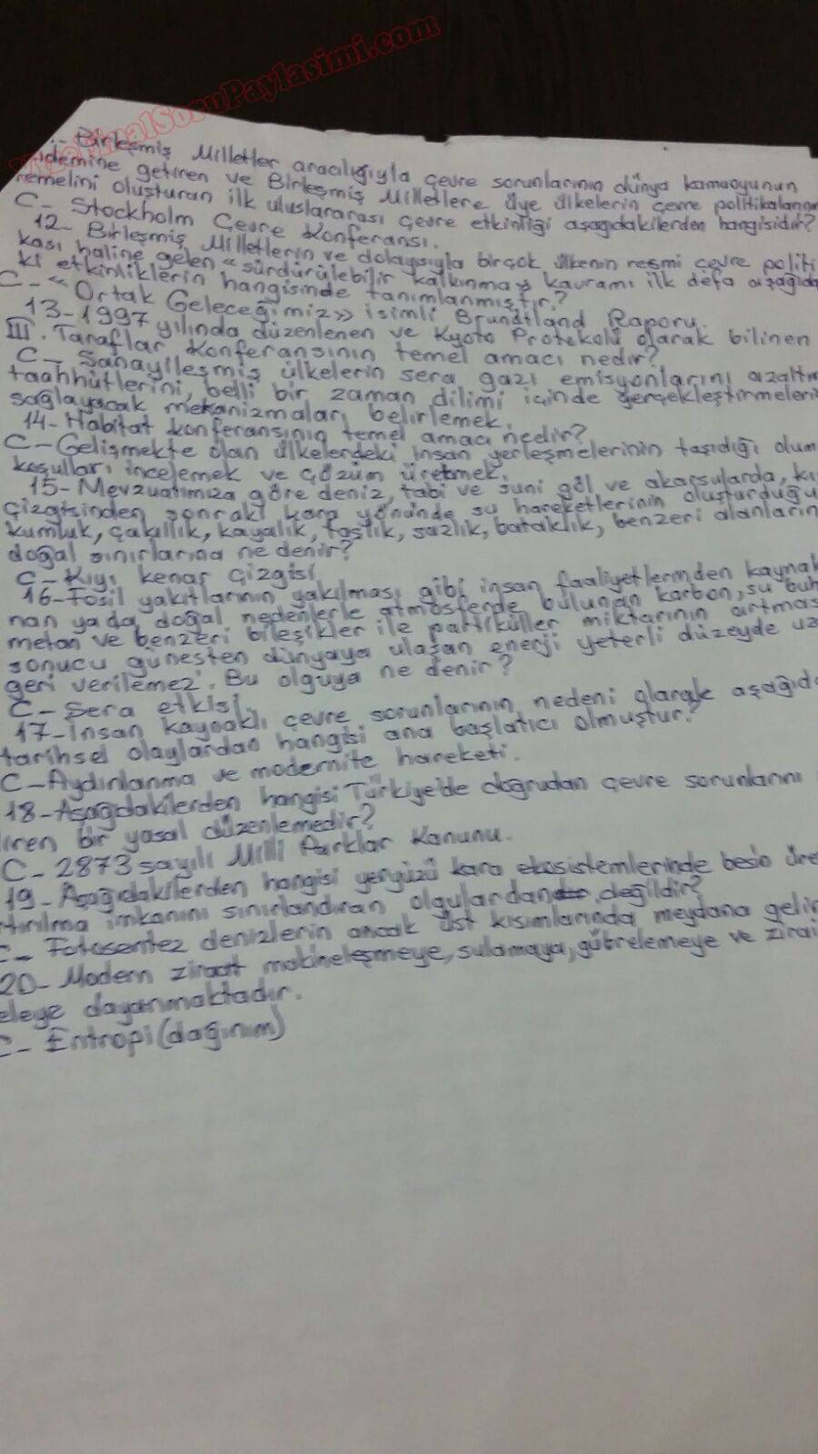 Vize ve Final Soruları / Celal Bayar Üniversitesi / Çevre Yönetimi ve Örgütlenmesi