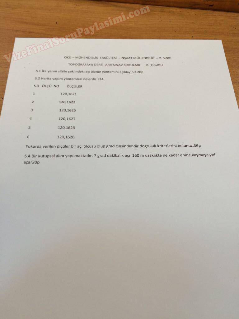 Vize ve Final Soruları / Erzurum Atatürk Üniversitesi / Topoğrafya Dersi