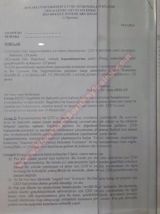 Vize ve Final Soruları / Kocaeli Üniversitesi / Çed ve Çevre Mevzuatı Dersi