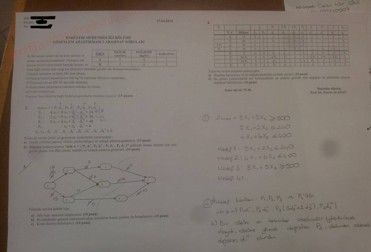 Yöneylem Araştırması Vize Soruları 7-07-2015, 15:00