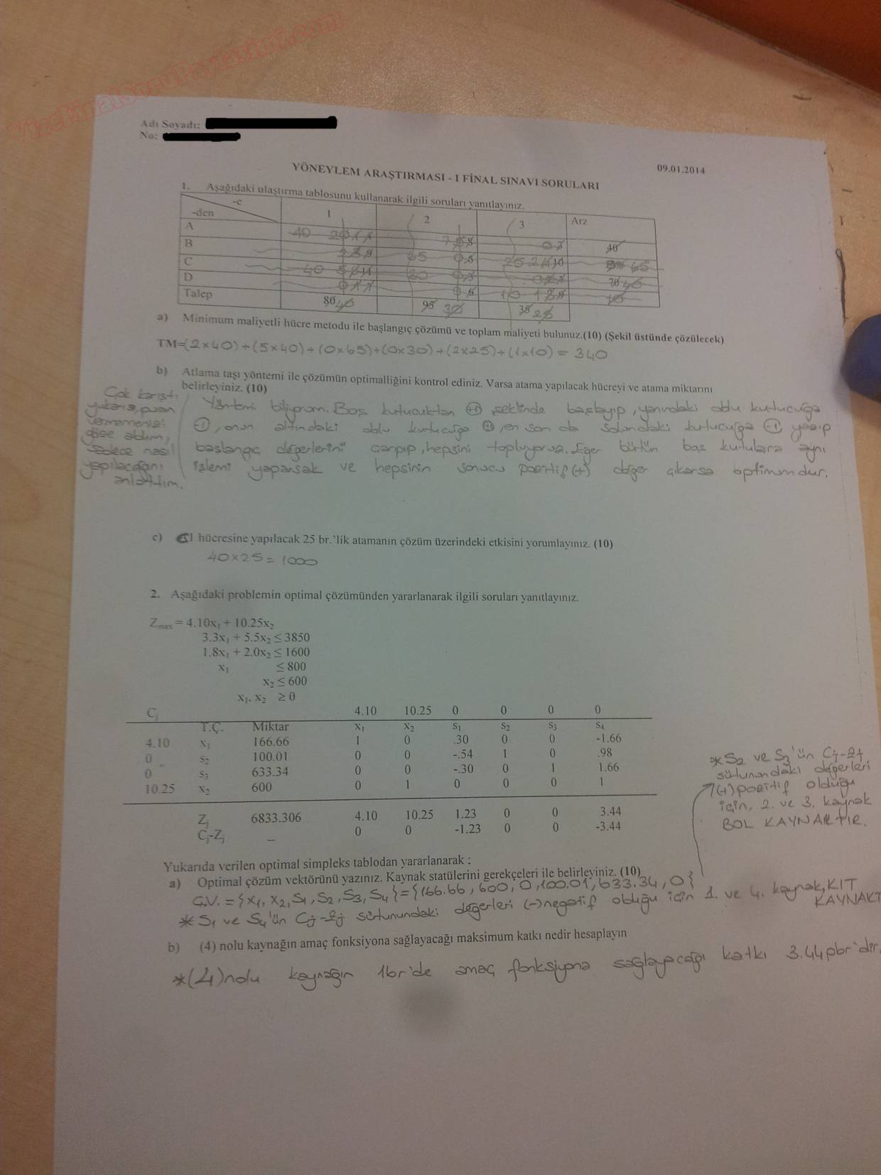 Yöneylem Araştırması Final Soruları Ve Cevapları-2014 23-04-2015, 22:21