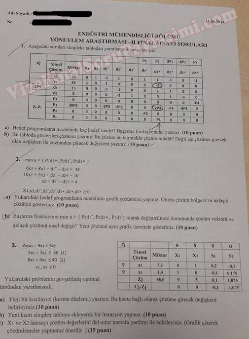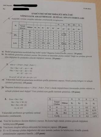 Vize ve Final Soruları / Kocaeli Üniversitesi / Yöneylem-2