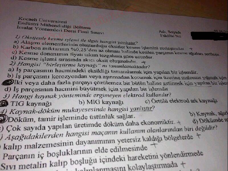 Vize ve Final Soruları / Kocaeli Üniversitesi / İmalat Yöntemleri Dersi