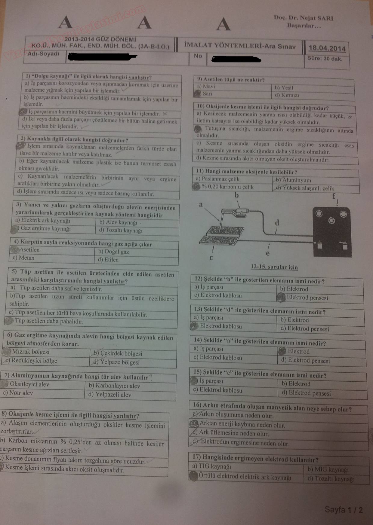 Özel Döküm Yöntemleri-1 Vize Soruları 26-12-2014, 21:57