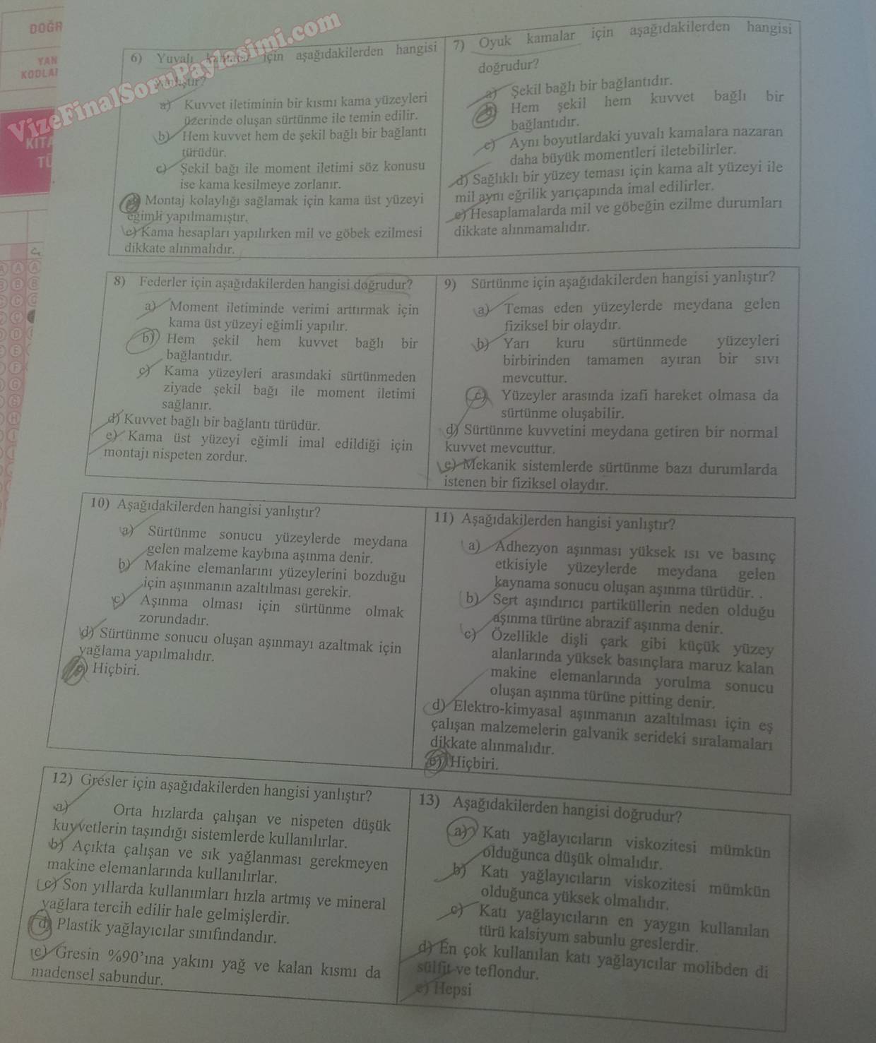 Vize ve Final Soruları / Kocaeli Üniversitesi / Makine Elemanları Dersi