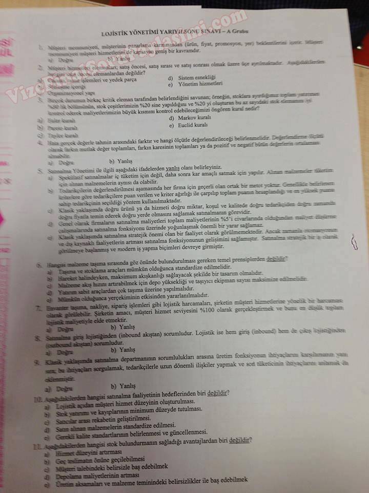 Vize ve Final Soruları / Kocaeli Üniversitesi / Lojistik Yönetimi Dersi