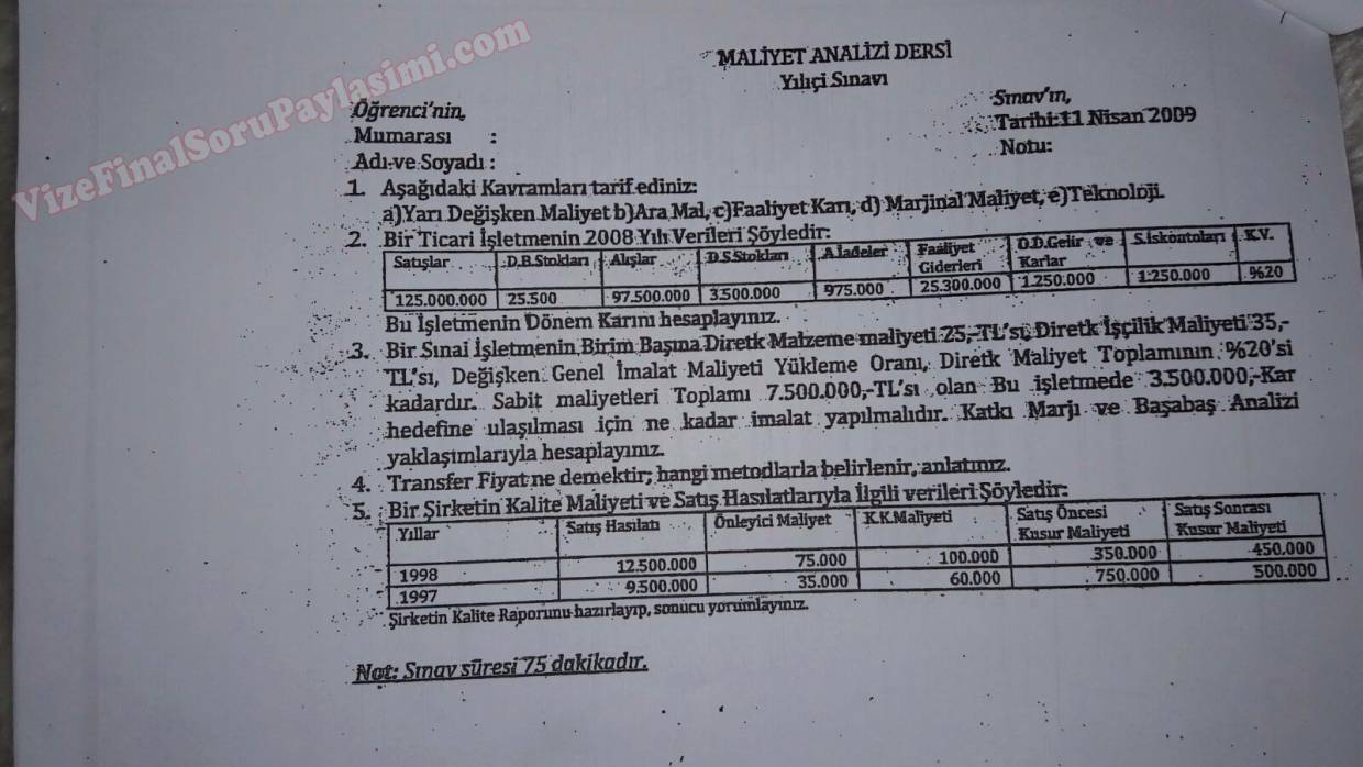 Maliyet Analizi Vize Soruları 22-04-2019, 23:36