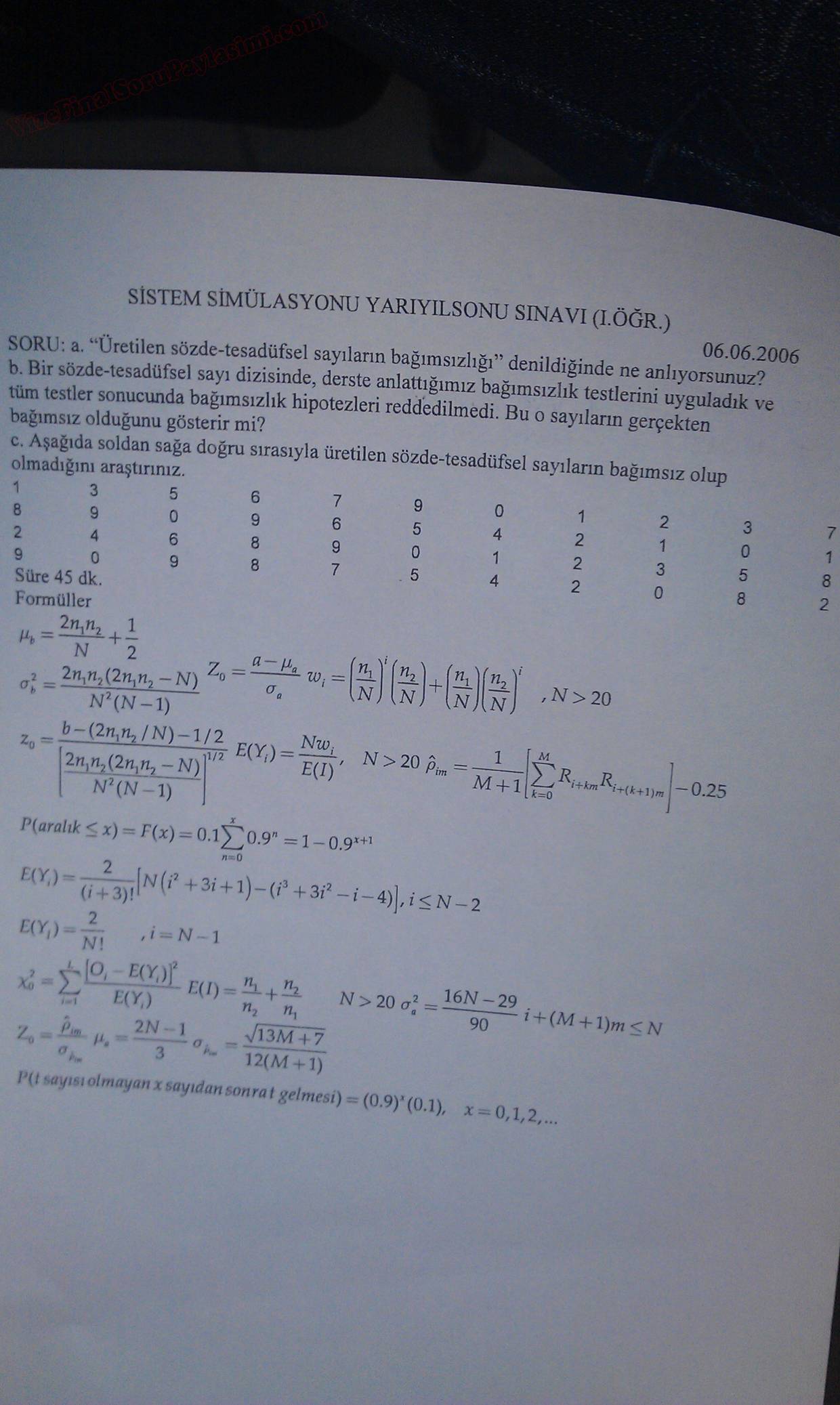 Vize ve Final Soruları / Kocaeli Üniversitesi / Sistem Simulatorü Dersi