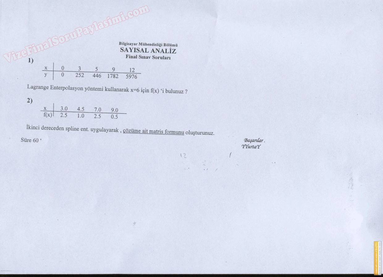Sayısal Analiz Yaz Okulu Final Soruları Ve cevapları -2007 1-08-2015, 22:20