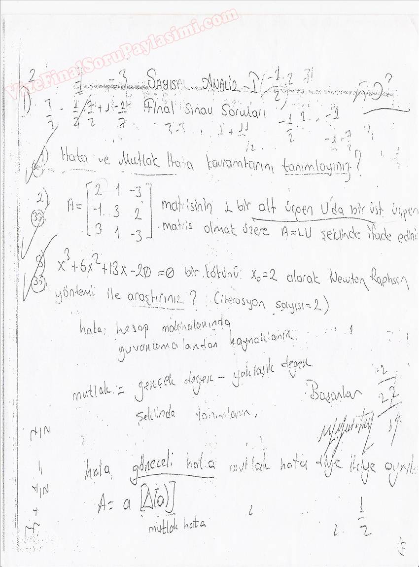 Sayısal Analiz Yaz Okulu Final Soruları Ve cevapları -2007 1-08-2015, 22:20