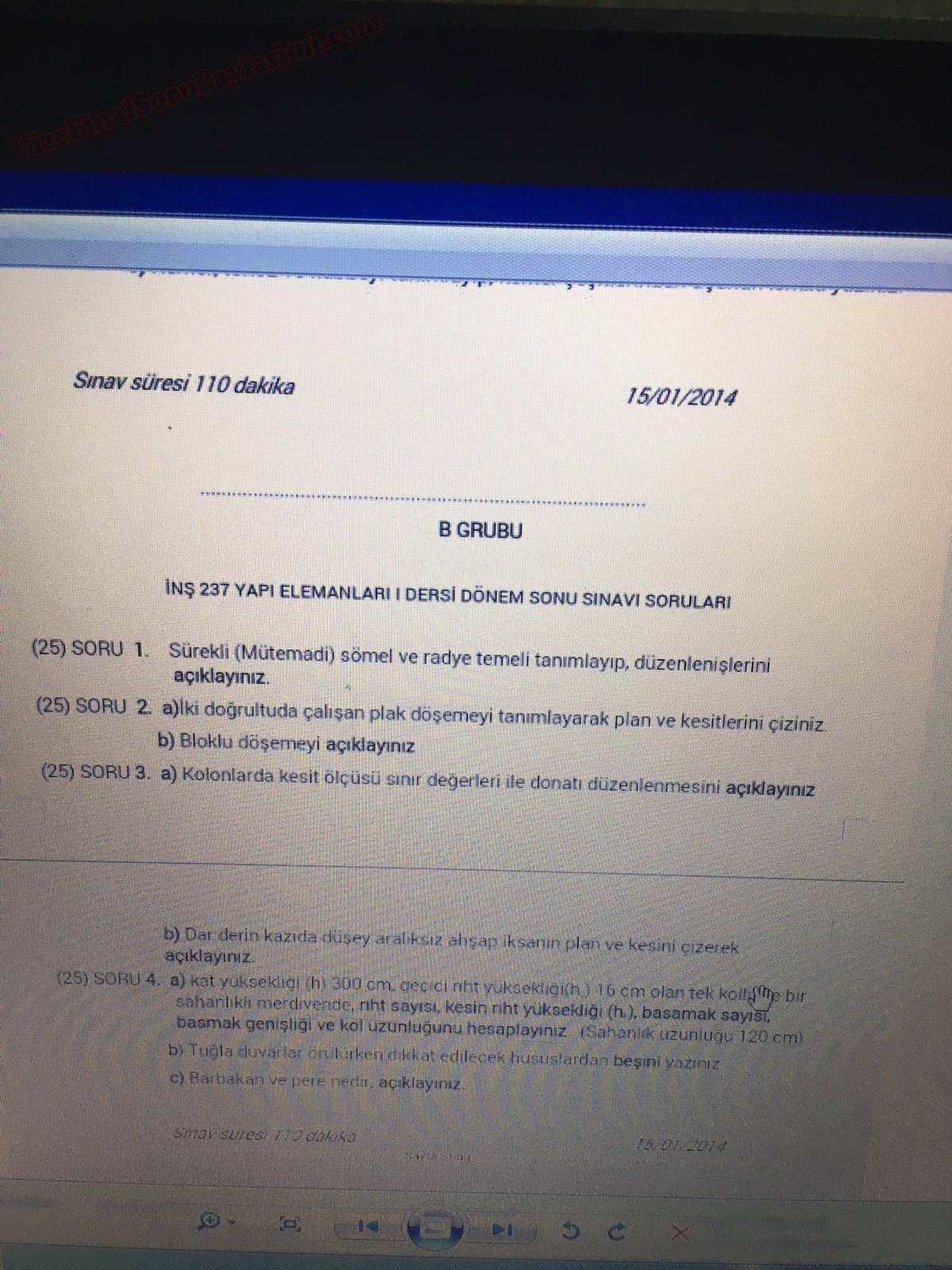 Yapı Elemanları-1 Final Soruları 4-06-2019, 19:40
